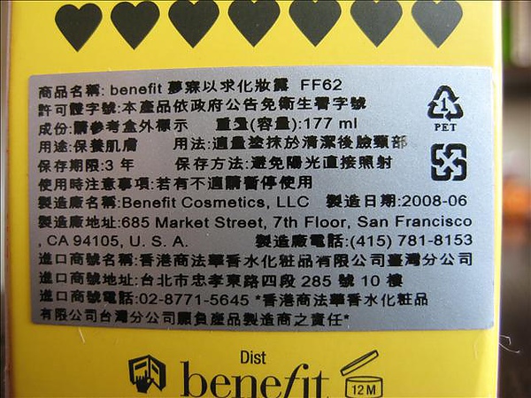 Benefit 夢寐以求化妝露(包裝盒內的說明書是寫 "保濕抗皺活力醒膚水")